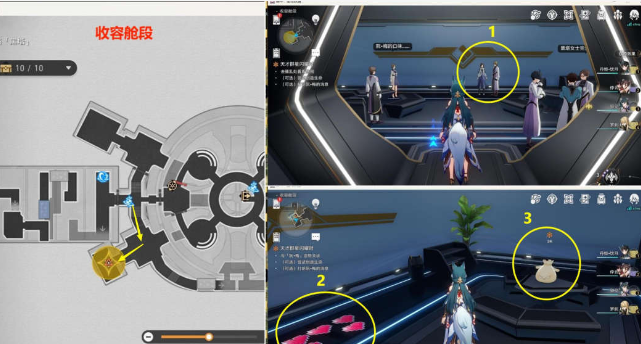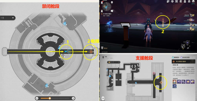 14、从电梯上去到任务点1,乘坐右边的电梯到任务点2,最后到【支援舱】推进剧情,第一阶段结束;