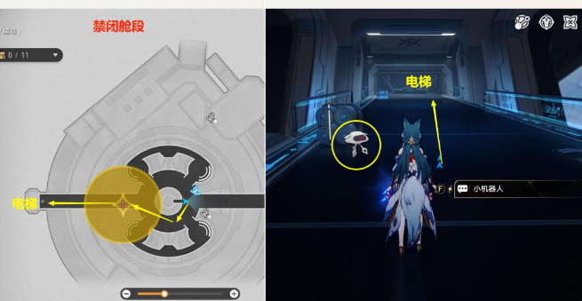 7、前往下图任务点,乘坐电梯前往新地图【密闭小屋】位置;