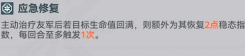 2.主动治疗盟友。如果生命值满了,还会额外恢复2点稳态指数。每轮触发一次。