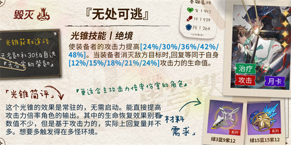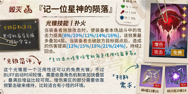 分析:大月卡的氪星光锥需要五个版本才能堆满。击杀敌人后有稳定的攻击加成和生命恢复。