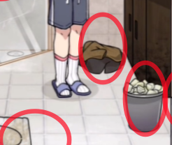 1、男生卫生间:垃圾桶、破镜子、蚊香、脏衣服。