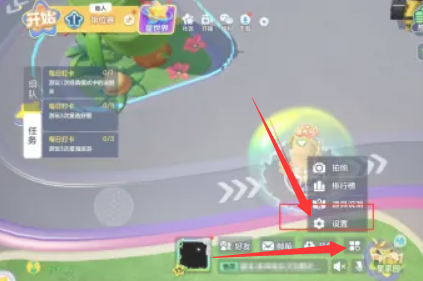 1、首先打开游戏界面,选择背包右侧的方形按钮,点击功能栏中的【设置】;