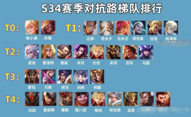 王者荣耀s34赛季对抗路英雄梯度排行 新赛季快速上分英雄推荐