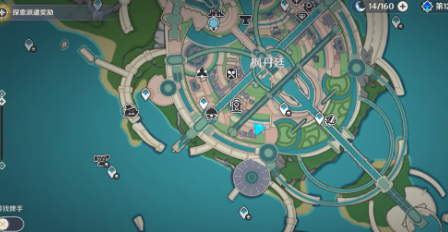 2、然后玩家打开地图,利用传送锚点快速到达枫丹白露左下角的书报摊。