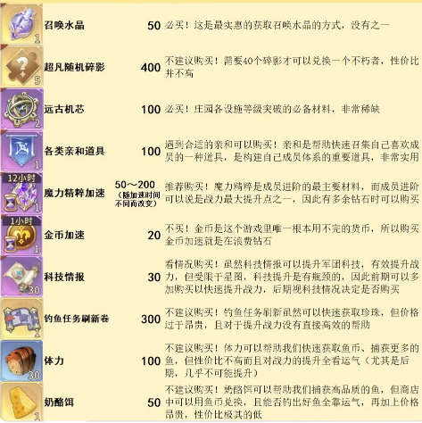 1.钻石商店每周刷新,是帮助更高效提升战力的地方。