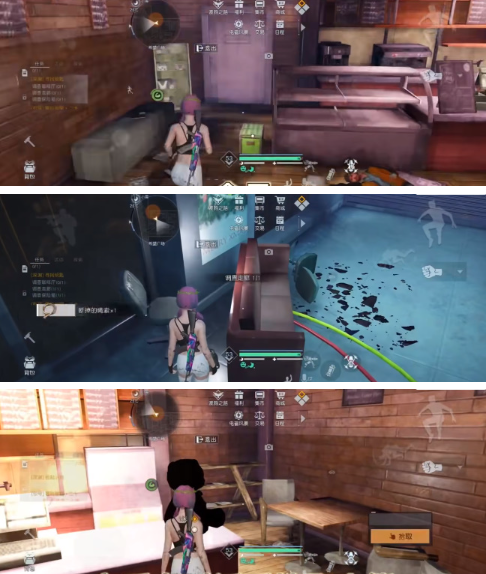 2.我们爬上车顶,推开垃圾桶就跑。在图中所示的房间里,我们寻找箱子、背包和废纸箱,互相交谈后,我们捡起了小熊。