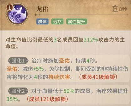 1.恢复生命比例最低的3名成员的生命值,治疗时施加神圣祝福,持续4秒。