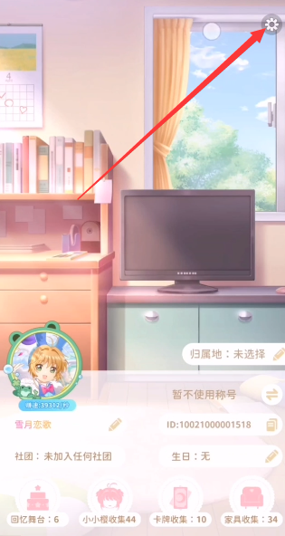 2、然后在个人中心页面,点击右上角的【设置】功能;
