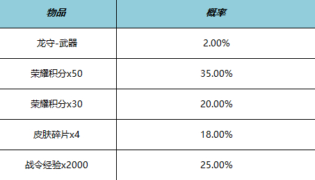 4.随机获得:荣耀点、皮肤碎片、战令经验、龙卫武器。