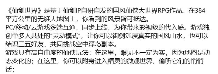 2.《仙剑世界》拥有PC端、手机端、云游戏三个端口,且端口互通,玩家可以在不同设备上进行游戏。