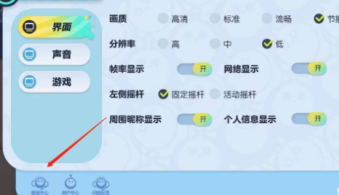 2、然后我们进入设置界面,点击左下角的客户服务中心,在客户中心点击左侧的客户服务即可找到客户服务。