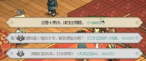 1、首先我们支付10个金币,也就是10000铜币,与群芳阁馆主互动,选择解谜。