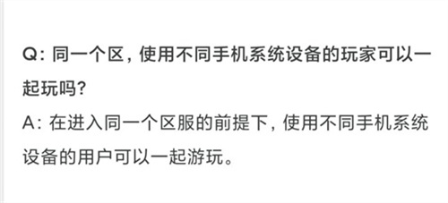 2.因此,不同苹果和安卓设备的玩家只要在同一个区域服务器就可以一起玩。