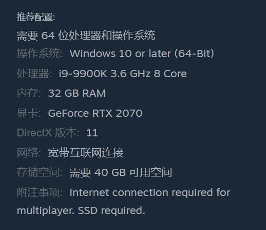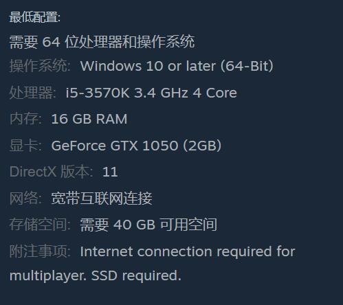 附加说明:多人游戏需要互联网连接。需要SSD。
