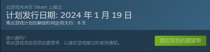 1.游戏目前已在Steam上架,将于2024年1月19日发售。