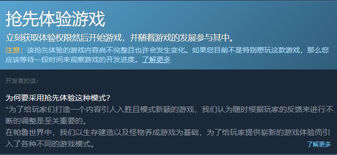 2、本次在Steam上发布的版本为早期版本,因此无法看到游戏的价格显示。