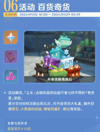 2、活动期间,立本将随机为旅行者提供七种不同的怪箱奖励。