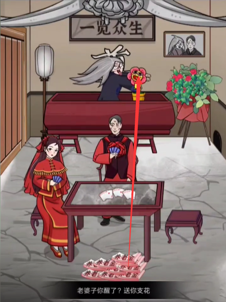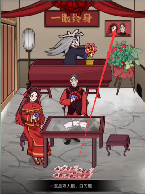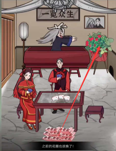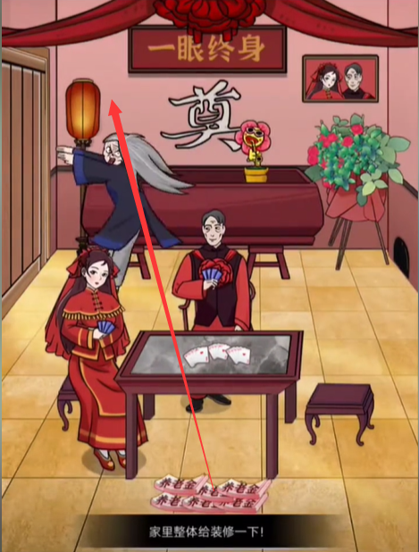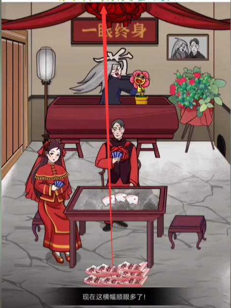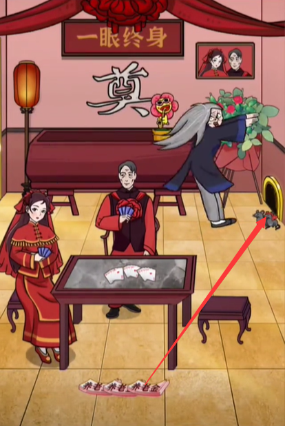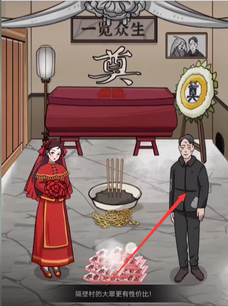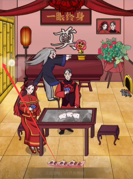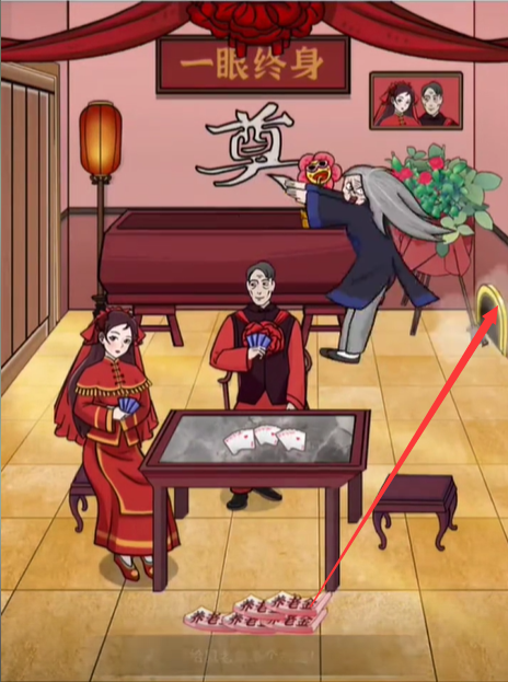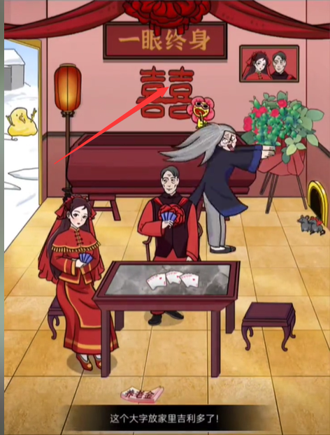 14、然后拖着钱把木棺后面的“殿”字改成“喜”字;