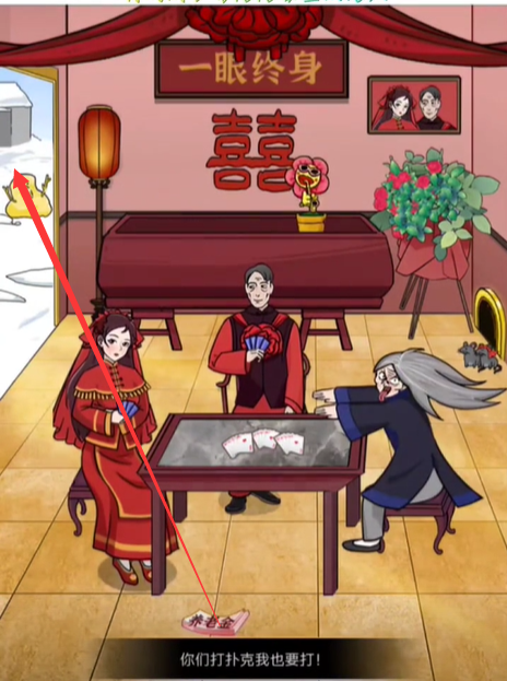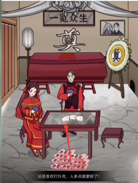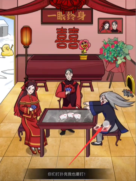 4、拖钱把新郎和新娘之间的火盆换成桌子玩扑克;