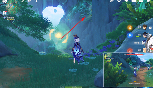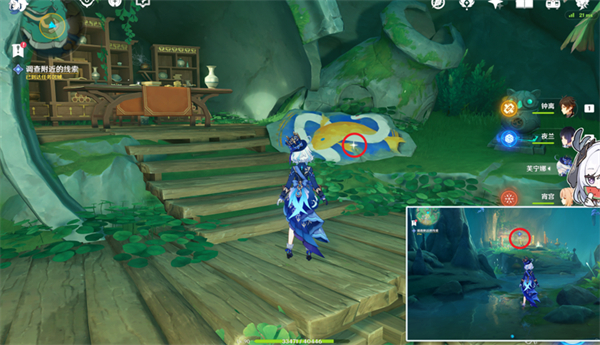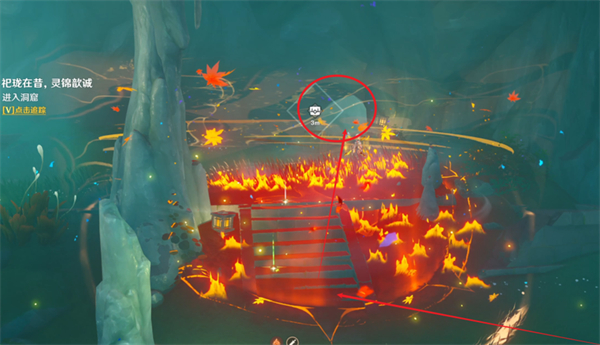 10.调查旁边的石板,自动传送到山洞,靠近调查锦鲤壁画。