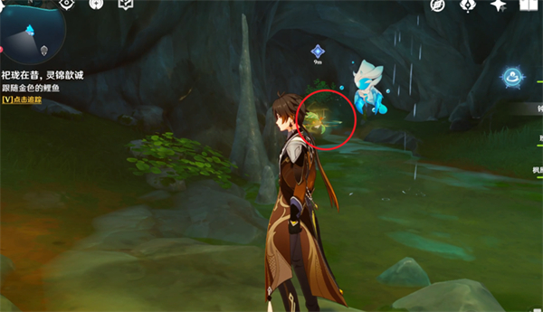 5.前往南方的小岛,调查仙女旁边的涟漪,引导仙女,会出现仙女雕像,将仙女雕像放在底座上。