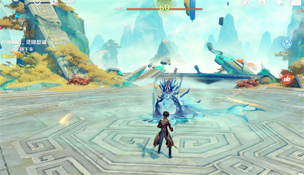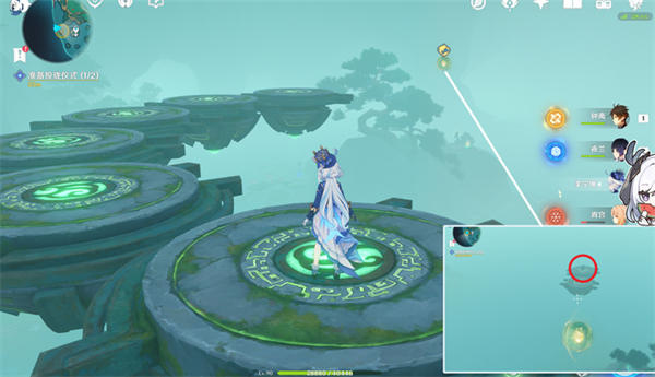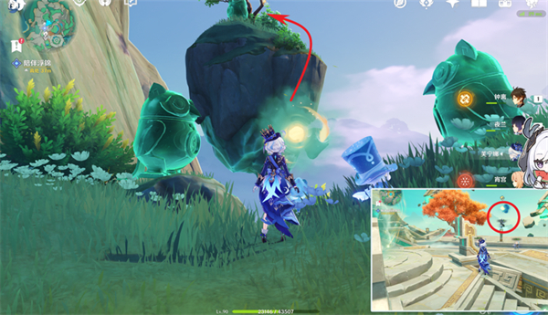 6.前往北部的小岛,靠近基地,会出现一个浮动平台。然后借助风场飞了起来,用仙力引导对面的浮台。