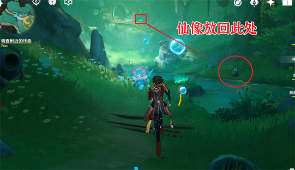 7、用对面的水珠捡起南国仙子雕像,放回底座上。