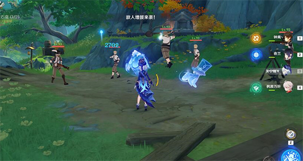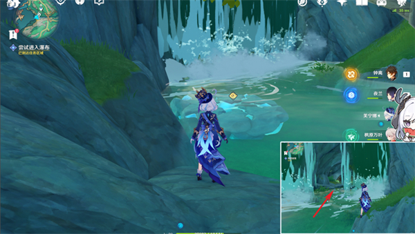 1.跟随小毛来到瀑布,击碎下面的岩石。