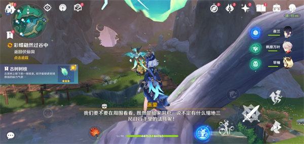 4.左转进入洞穴深处,与仙女雕像对话,找到丢失的蝴蝶。蝴蝶位置如下。