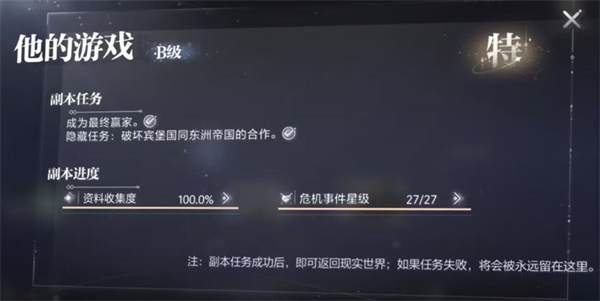 世界之外他的游戏百分百收集度攻略