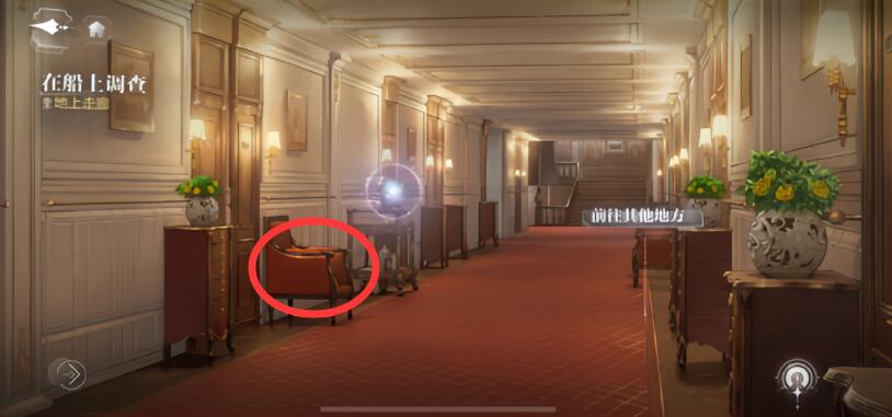2. 单击走廊左侧的红色椅子。