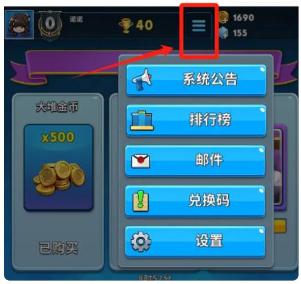 进入游戏后,我们点击三栏进入,然后选择兑换码,输入兑换码。