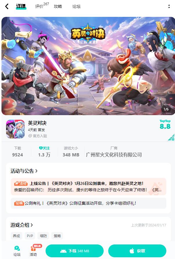 1、首先我们进入点击,搜索英雄决斗,然后点击下面下载按钮旁边的活动。