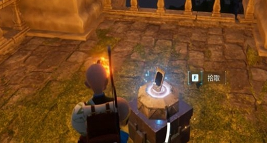 2.然后在下图所示的位置,你会在闪烁的平台上找到一份漂流笔记。按[F]键即可获取;