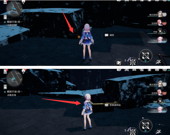 2.我们根据地图标记藏宝图的位置,找到藏宝位置并点击进行调查。
