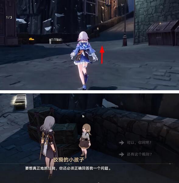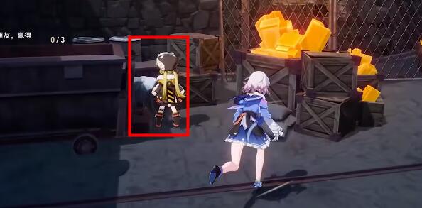 4、第三个狡猾小孩的位置:按照图中所示方向移动,就能找到盒子后面的小孩。