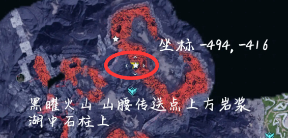 黑曜石火山山腰传送点左上角,岩浆湖中间平台