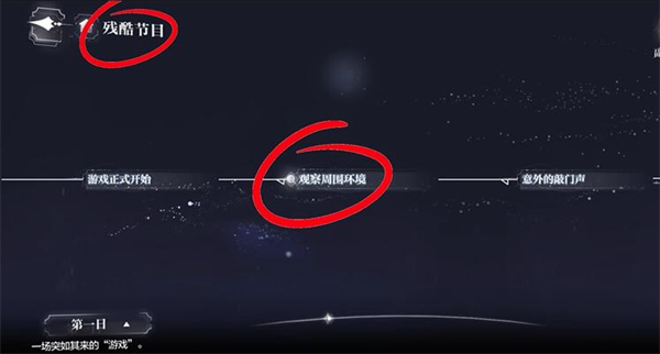 1.回想一下【第一天】中【观察周围环境】的剧情。