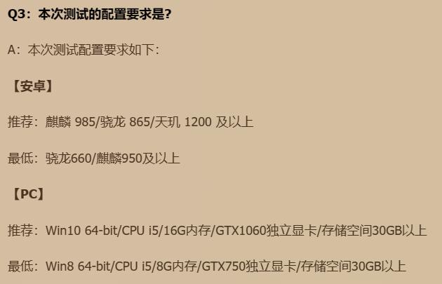 最低配置:Snapdragon 660/Kirin 950 及以上