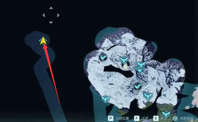 1、世界树位于下图箭头所示标点位置,需要驾驶飞行帕鲁才能到达;