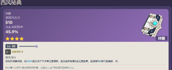 武器在四星武器中是比较强大的,攻击力也会得到加强。第一阶段武器效果增加24%,第五阶段蓄力增加48%,更适合闲云角色;