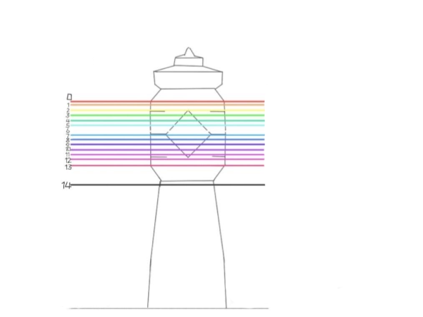 2.拍照时要注意灯塔的形状是菱形的。