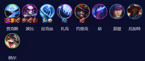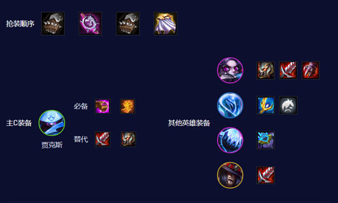 主力C贾克斯吸血、魔爆、正义,吸血物品之一无法成为另类泰坦;主T波比喝血、泰坦、二泰坦、血手;降阻T Zack Ion Spark;副C大天使拉克丝,EMO电话