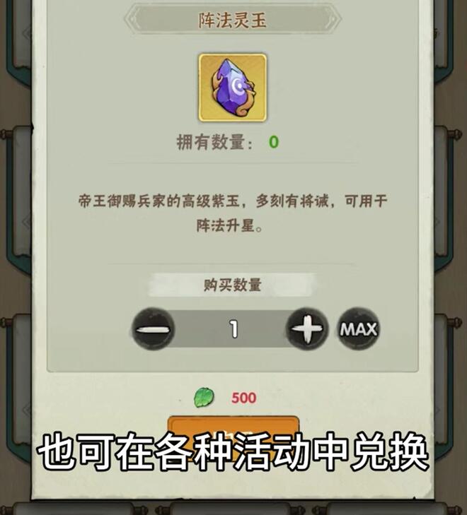 您可以在游戏中的【黑市】中花费500玉叶购买1块阵灵玉。
