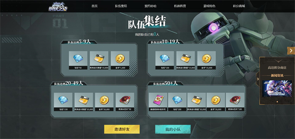 组队:在此页面,好友可以进行游戏预约,组建自己的队伍,并获得相应的奖励资源。