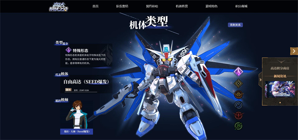 机体类型:您可以在这里看到游戏中的机甲高达图像。您可以选择控制不同的类型。