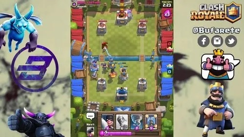 Clash Royale主要是1v1模式,结合了MOBA游戏的三个分支。玩家需要摧毁一座公主塔,获得一顶王冠,摧毁国王塔才能获胜。在获胜的过程中,玩家需要通过不断打开宝箱来获取卡牌。随着奖杯的增加,解锁不同的竞技场,以增强与其他在线玩家的匹配战斗能力!