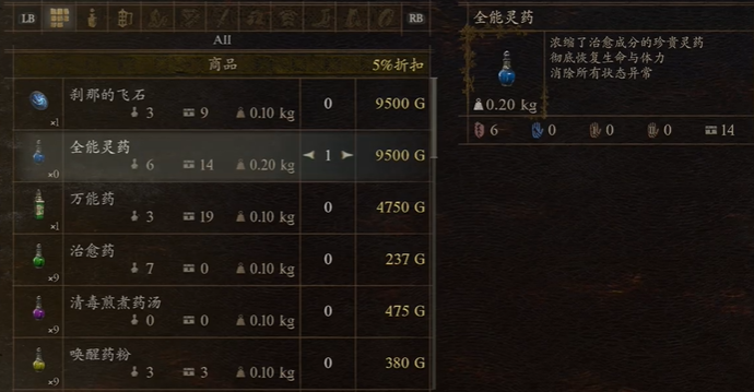 2、在格雷西亚商店找到商品【万能灵药】;