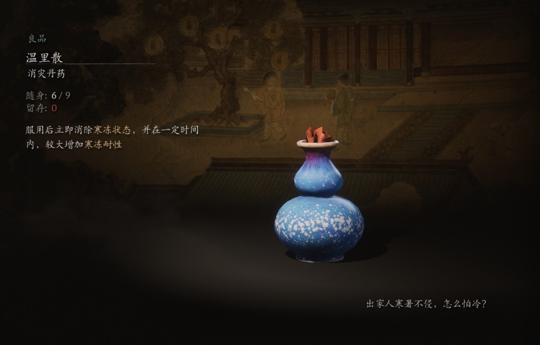 首先,服用温力散后,玩家可以立即消除冰冻状态;