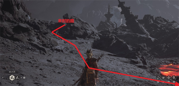 5、然后来到地殿【火地-流星砖坑】。别往前走。回到大铁球刚刚滚动的地方。你会看到中间有一个叉子,进入这个叉子。